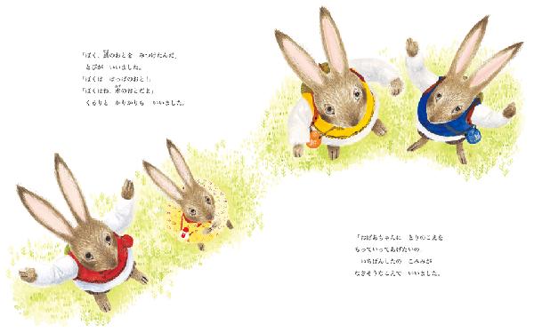 けがをしたおばあちゃんを元気づけるため、森のおとさがしに出かけたこうさぎたち。あたたかな春の森で見つけた、不思議なおとぶくろとは……?