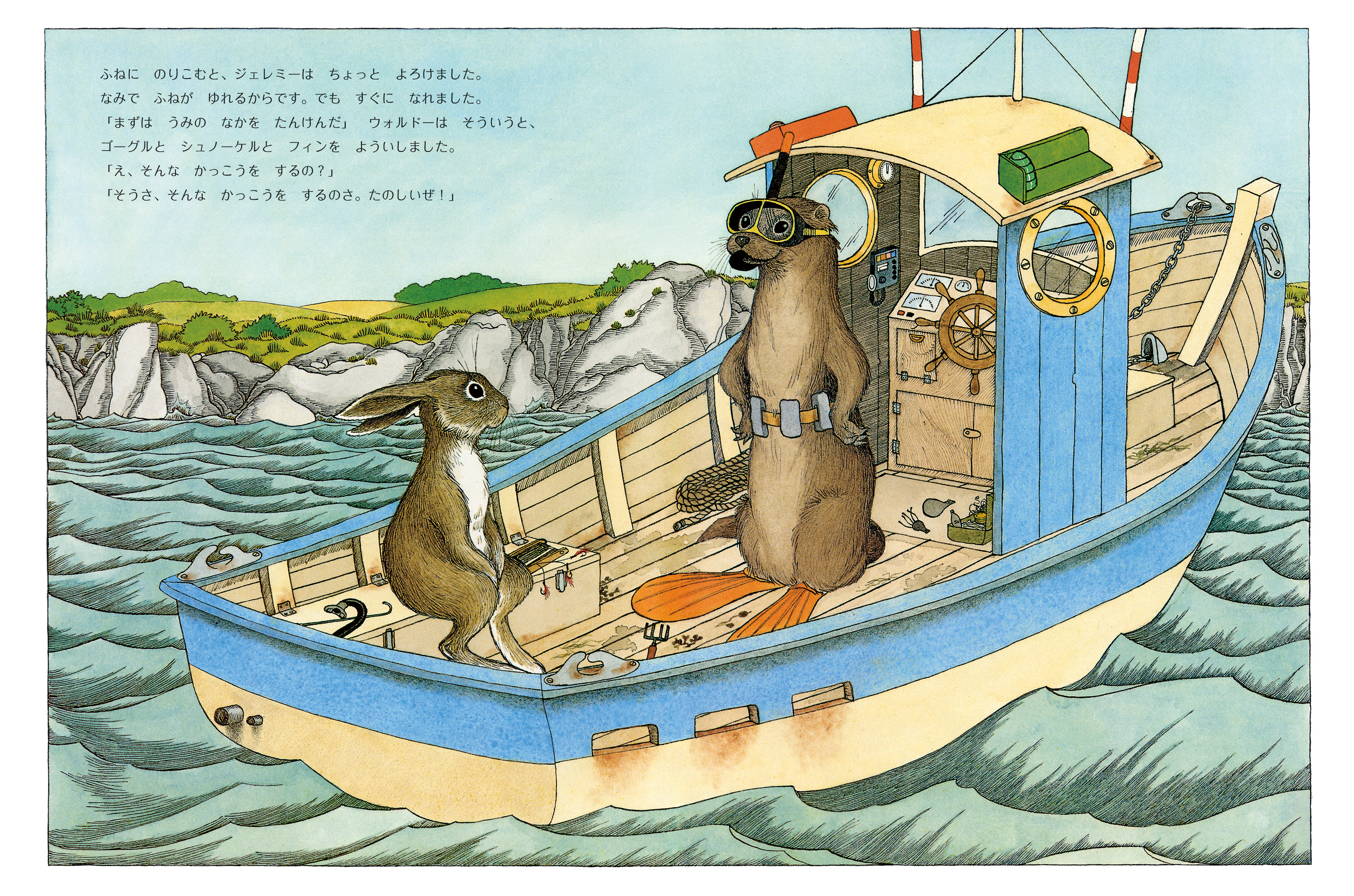 うさぎのジェレミーは、海辺に住んでいるかわうそのウォルドーを訪ねることにします。列車と車を乗り継いでようやく着いた港町。そこからふたりは、船に乗って海に出たり、気球に乗って空を飛んだり。最高の冒険旅行のはじまりです!