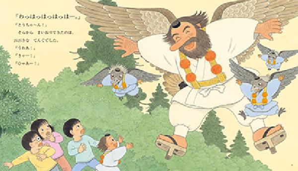 わんぱくだんの3人がハイキングの途中で出会ったのは、自分のことを天狗だという男の子。男の子は、天狗らしいところを見せようとするけれど、失敗ばかり。やがて泣き出してしまいました。3人は、男の子のために、いっしょに遊んであげます。すると、そこへ現れたのは・・・