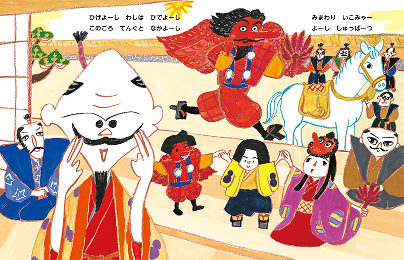 はやおき よーし てんき よーし わしは ひでよーし 今日も てんぐと見回りにしゅっぱーつ。 困り事をつぎつぎと解決して みなも でーら きげんよーし!
