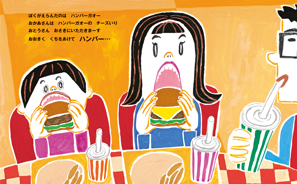 ハンバーガー屋さんにやってきたおとうさんとおかあさんとぼく