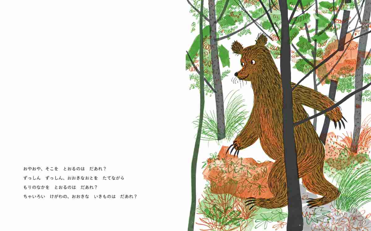 いろいろなどうぶつたちが森のなかをとおります。森を散歩しているような気持ちで、どうぶつたちのようすをのぞいてみましょう。