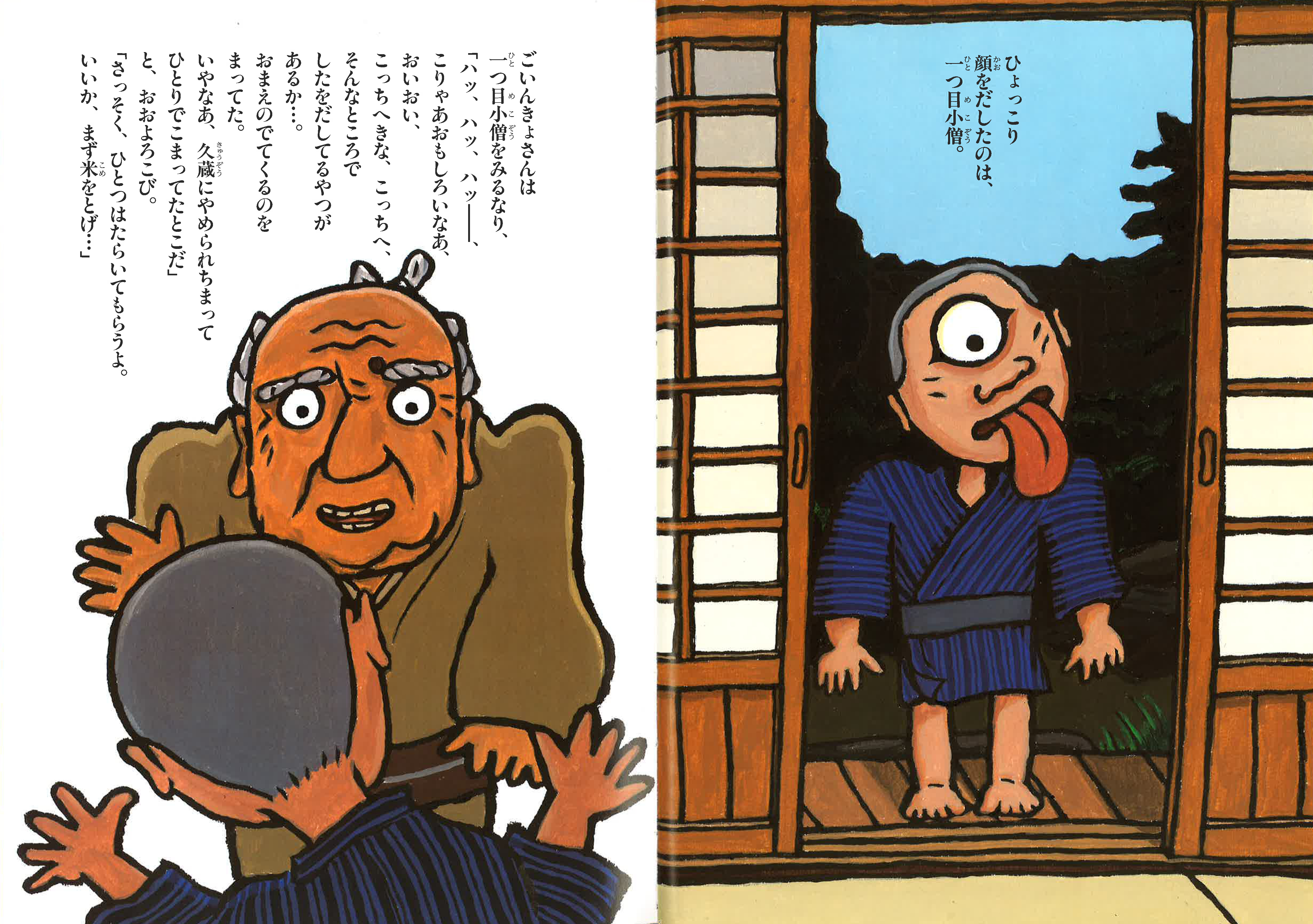 噂通り、庭の障子がスーッと開いて、毎日ばけものたちが現れる。