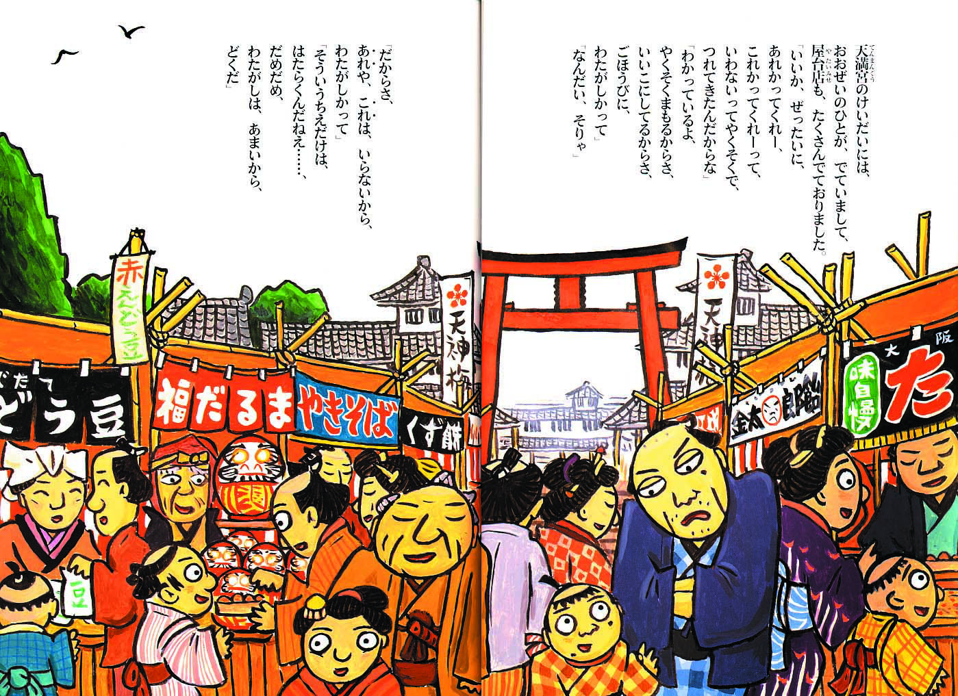 お父さんは金坊を連れて初天神へ行くはめになってしまいました。