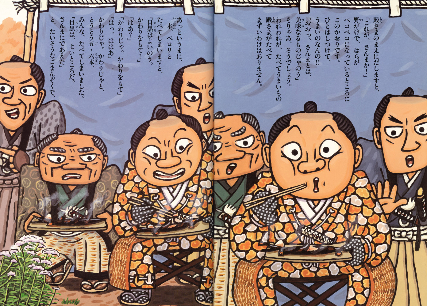 世間知らずのお殿さまが目黒で焼きたてのおいし~いさんまに出会い、その味が忘れられず、というおなじみの落語。